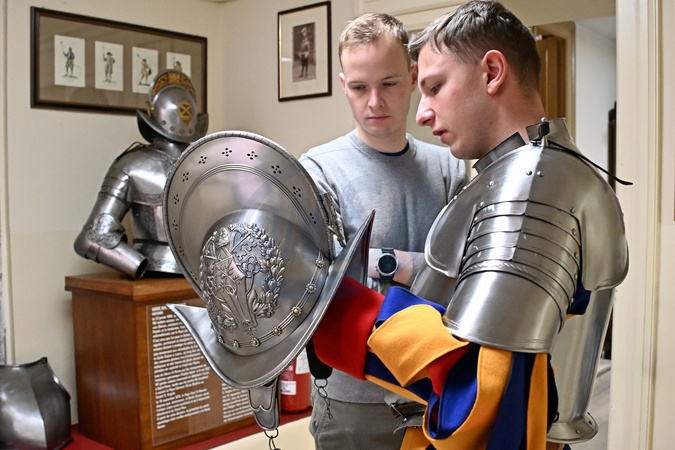 Recruits of the Pontifical Swiss Guard prepare for the oath. Vatican City 30 April 2024
