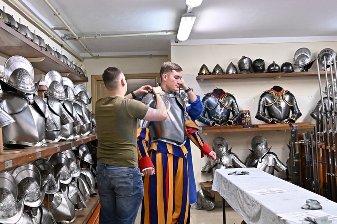 Recruits of the Pontifical Swiss Guard prepare for the oath. Vatican City 30 April 2024