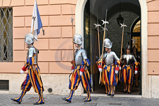Recruits of the Pontifical Swiss Guard prepare for the oath. Vatican City 30 April 2024