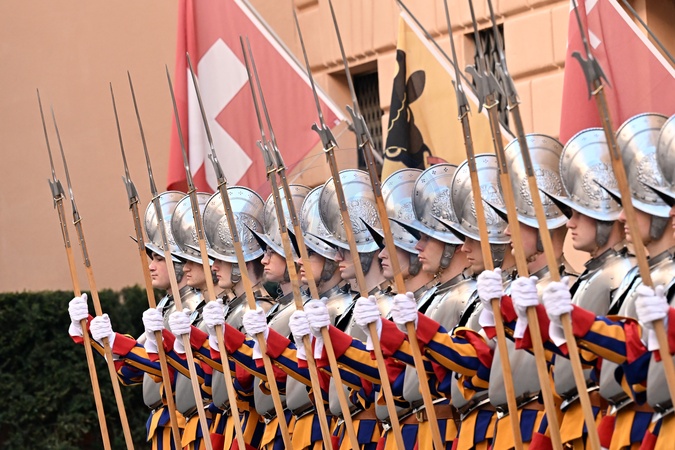 Recruits of the Pontifical Swiss Guard prepare for the oath. Vatican City 30 April 2024