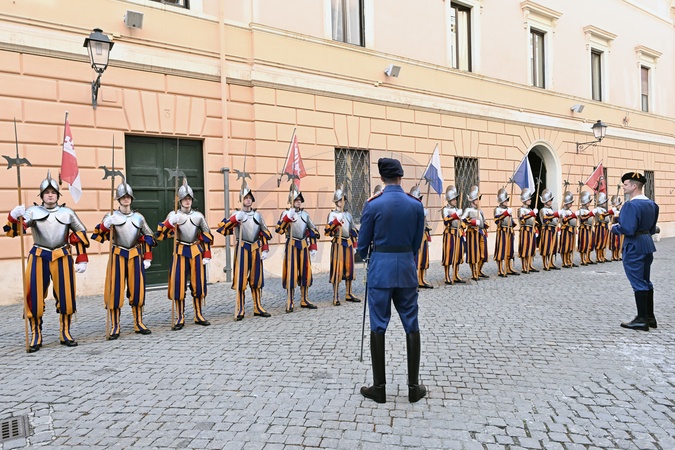 Recruits of the Pontifical Swiss Guard prepare for the oath. Vatican City 30 April 2024