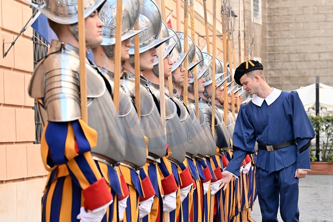 Recruits of the Pontifical Swiss Guard prepare for the oath. Vatican City 30 April 2024