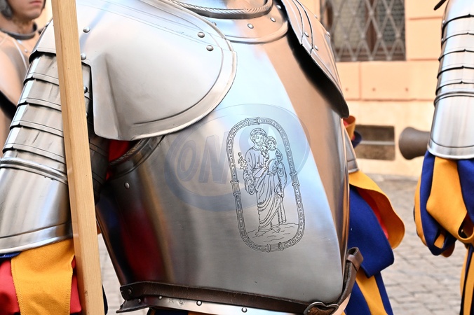 Recruits of the Pontifical Swiss Guard prepare for the oath. Vatican City 30 April 2024