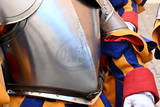 Recruits of the Pontifical Swiss Guard prepare for the oath. Vatican City 30 April 2024