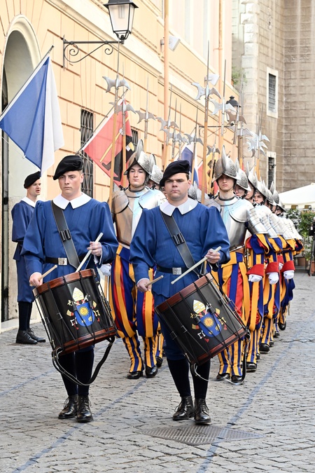 Rekruci Papieskiej Gwardii Szwajcarskiej przygotowują się do przysięgi. Watykan, 30 kwietnia 2024 r
