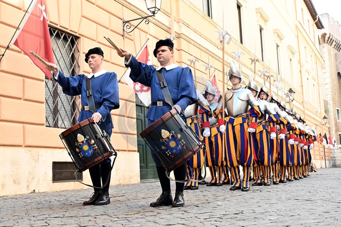 Recruits of the Pontifical Swiss Guard prepare for the oath. Vatican City 30 April 2024