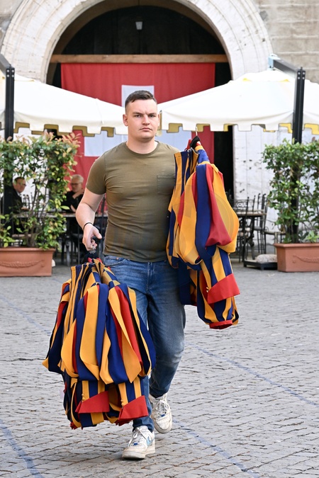 Recruits of the Pontifical Swiss Guard prepare for the oath. Vatican City 30 April 2024