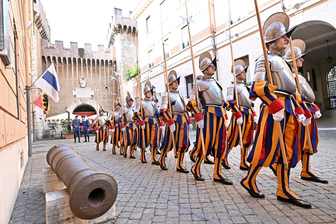 Recruits of the Pontifical Swiss Guard prepare for the oath. Vatican City 30 April 2024
