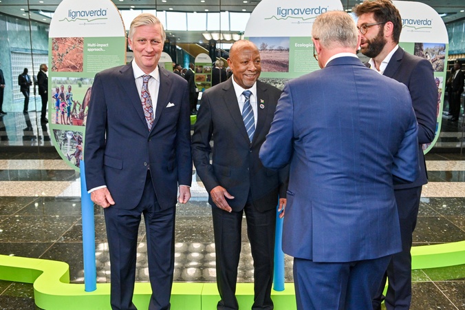 Le roi Philippe de Belgique en visite à l'exposition "Lignaverda" à Windhoek lors de son voyage de travail en Namibie
