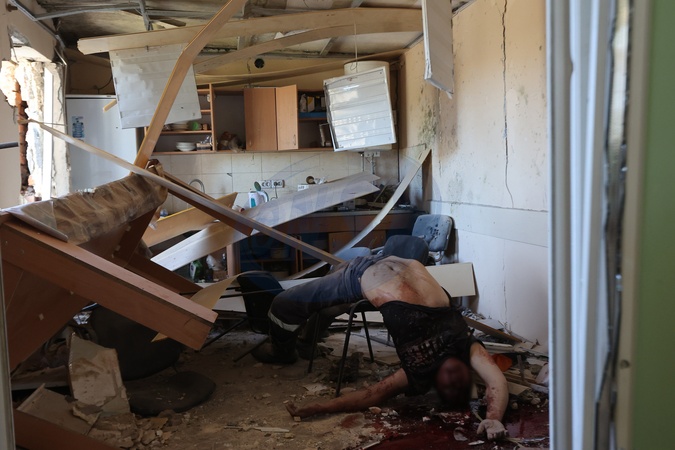KHARKIV, UKRAINE - APRIL 30, 2024 - A man killed at his workplace as a result of Russian shelling of Kharkiv, northeastern Ukraine, Credit:Viacheslav Madiievskyi / Avalon