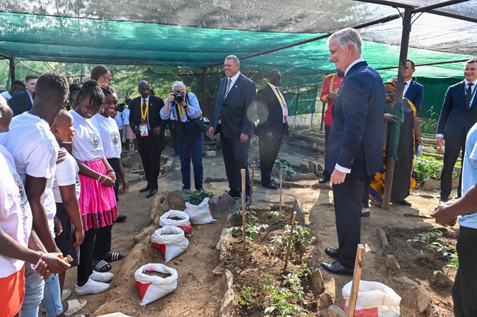 Le roi Philippe de Belgique en visite à l'ONG "Hope Initiative Southern Africa" à Windhoek, lors de son voyage de travail en Namibie