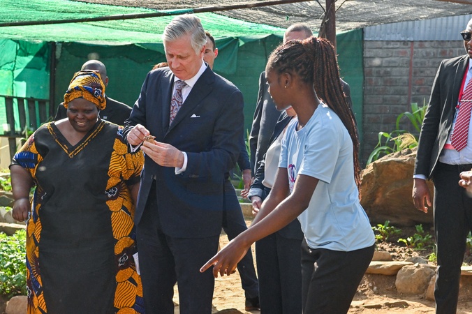 Le roi Philippe de Belgique en visite à l'ONG "Hope Initiative Southern Africa" à Windhoek, lors de son voyage de travail en Namibie