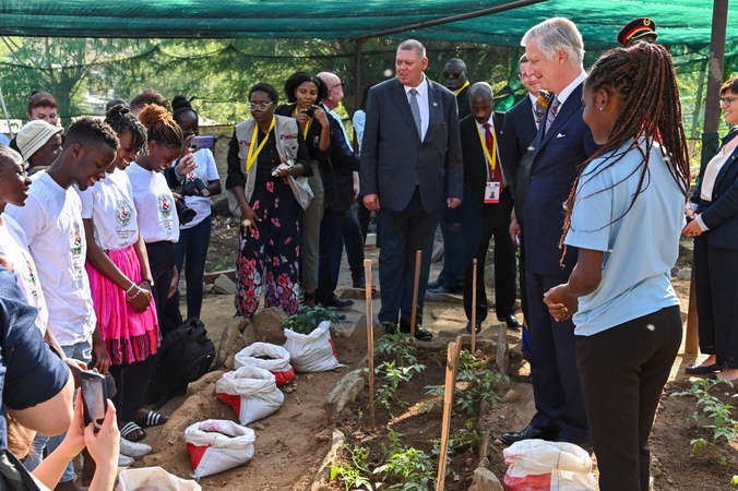 Le roi Philippe de Belgique en visite à l'ONG "Hope Initiative Southern Africa" à Windhoek, lors de son voyage de travail en Namibie