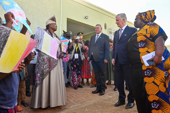 Le roi Philippe de Belgique en visite à l'ONG "Hope Initiative Southern Africa" à Windhoek, lors de son voyage de travail en Namibie