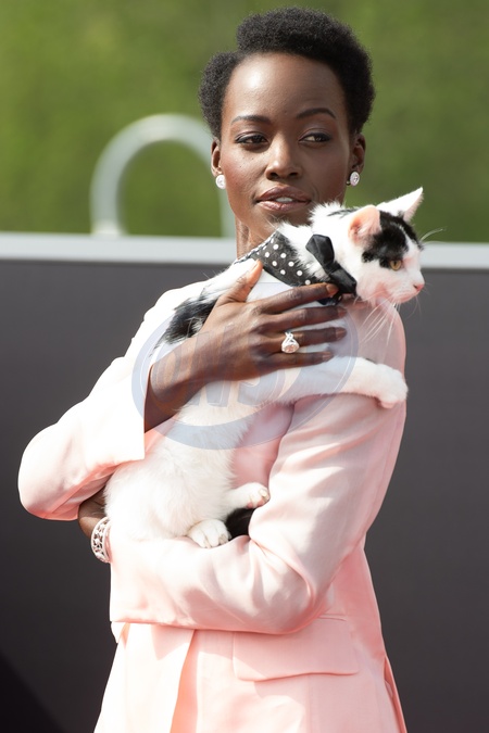 Lupita Nyong'o and Schnitzel the cat attends a Photocall for 'A Quiet Place: Day One' at IET Building, London, England, UK on Wednesday 1 May, 2024., Credit:Justin Ng / Avalon