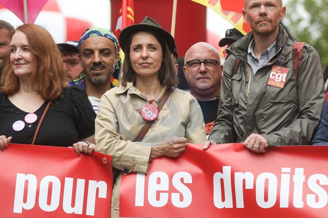 Sophie Binet, secrétaire générale de la CGT - Manifestation unitaire des syndicats du 1er mai pour. la journée du travail, Paris, le 1er mai 2024. © Stéphane Lemouton / Bestimage Joint demonstration by the trade unions on 1 May in support of Labour Day, Paris, 1 May 2024