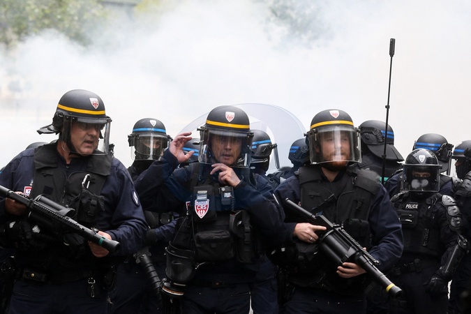 Manifestation unitaire des syndicats du 1er mai pour. la journée du travail, Paris, le 1er mai 2024. © Stéphane Lemouton / Bestimage Joint demonstration by the trade unions on 1 May in support of Labour Day, Paris, 1 May 2024