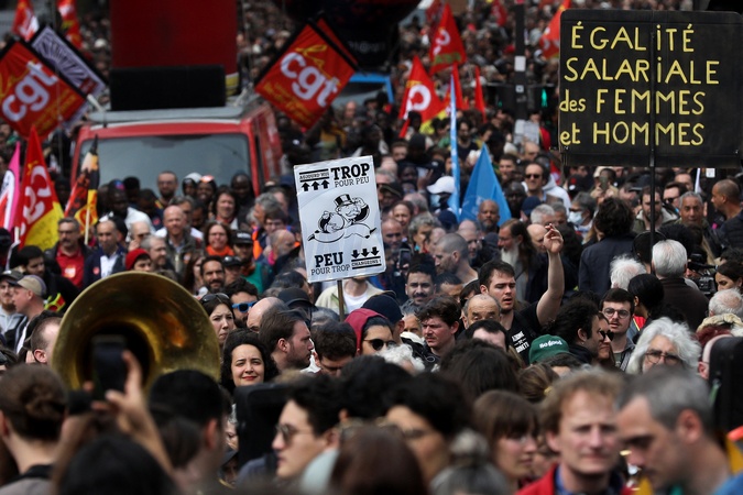 Manifestation unitaire des syndicats du 1er mai pour. la journée du travail, Paris, le 1er mai 2024. © Stéphane Lemouton / Bestimage Joint demonstration by the trade unions on 1 May in support of Labour Day, Paris, 1 May 2024