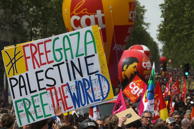 Manifestation unitaire des syndicats du 1er mai pour. la journée du travail, Paris, le 1er mai 2024. © Stéphane Lemouton / Bestimage Joint demonstration by the trade unions on 1 May in support of Labour Day, Paris, 1 May 2024