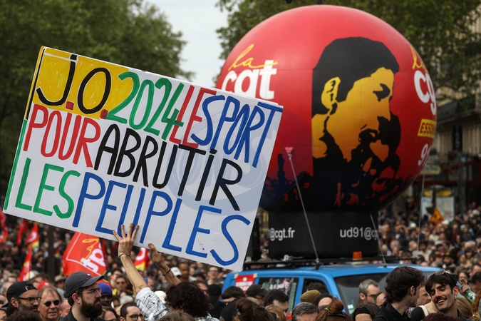 Manifestation unitaire des syndicats du 1er mai pour. la journée du travail, Paris, le 1er mai 2024. © Stéphane Lemouton / Bestimage Joint demonstration by the trade unions on 1 May in support of Labour Day, Paris, 1 May 2024