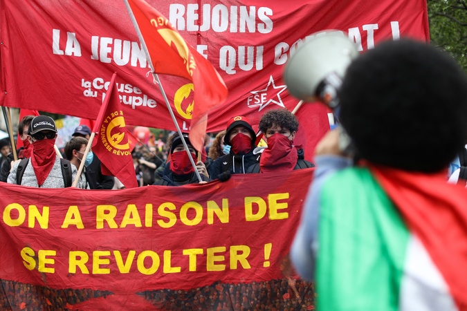 Manifestation unitaire des syndicats du 1er mai pour. la journée du travail, Paris, le 1er mai 2024. © Stéphane Lemouton / Bestimage Joint demonstration by the trade unions on 1 May in support of Labour Day, Paris, 1 May 2024