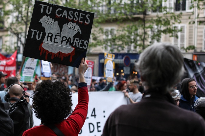 Manifestation unitaire des syndicats du 1er mai pour. la journée du travail, Paris, le 1er mai 2024. © Stéphane Lemouton / Bestimage Joint demonstration by the trade unions on 1 May in support of Labour Day, Paris, 1 May 2024