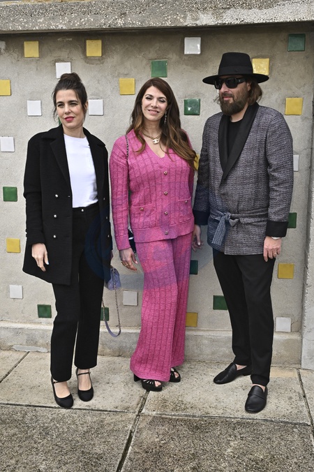 Charlotte Casiraghi, Amandine De La Richardiere et Sébastien Tellier au photocall du défilé croisière Chanel 2024-2025 à la Cité radieuse à Marseille, France, le 2 mai 2024. © Olivier Borde/Bestimage Photocall - Chanel Cruise 2024-2025 show in Marseille, France, on May 2, 2024.