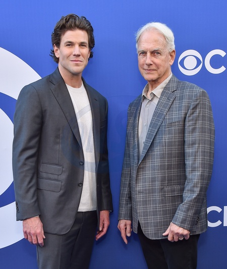 Austin Stowell and Mark Harmon arriving to the CBS 2024-2025 Fall Schedule Celebration held at Paramount Studios on May 2, 2024 in Hollywood, Ca.© Lisa OConnor/AFF-USA.com