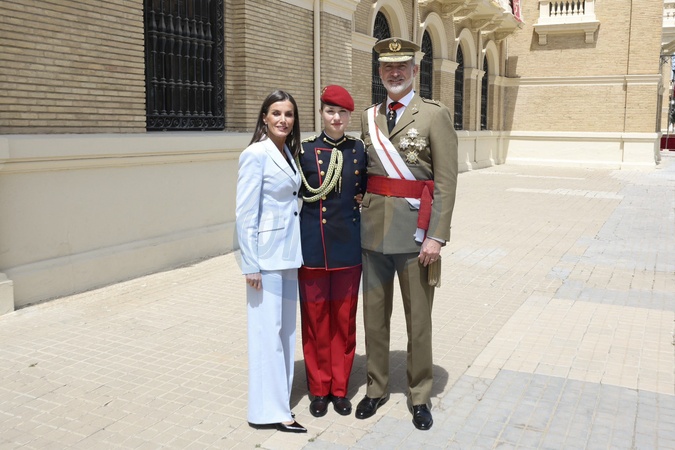 Le roi Felipe VI d'Espagne, en compagnie de la reine Letizia d'Espagne et de leur fille la princesse Leonor, célèbre le 40ème anniversaire de son investiture militaire à l'Académie militaire de Zaragoza, le 4 mai 2024. King Felipe VI and Queen Letizia at the 40th anniversary of the swearing in of King Felipe VI in the Spanish Army at the General Military Academy of Zaragoza on May 4, 2024 in Zaragoza (Spain).