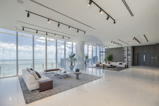 Pictures must credit: Aston Martin Luxury car maker Aston Martin given a first look at its now complete branded apartment tower block in Florida. The 66 storey Aston Martin Residences Miami is situated on the Miami waterfront, with 99% of the 391 condominiums sold ahead of completion. More than 50 residents are already owners of an Aston Martin car. The sail-shaped building was created to reflect the marina setting and offering panoramic views of Biscayne Bay and the city skyline. The development boasts seven penthouses which all have private pools and spacious terraces – complimented by a range of expansive one to five-bedroom residences and duplexes. The jewel in the crown is a unique three-floor condominium, spanning a total 2,526 square metres of living space, situated at the pinnacle. Residents are also able to enjoy direct access to an exclusive superyacht marina. A private butler service will be on-call 24/7 offering luxury travel support and a host of other services to homeowners. Highlight features adorned throughout the building include doors with bespoke artisan Aston Martin handles, number plinths and tan leather door tabs. Residents can relax and unwind just steps from their front doors, with 3,927 square metres of amenities designed by Aston Martin and spanning four full levels between the building's 52nd and 55th floors. Picture supplied by JLPPA