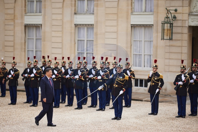 Prezydent Emmanuel Macron przyjmuje w Pałacu Elizejskim Xi Jinpinga, sekretarza generalnego Komunistycznej Partii Chin