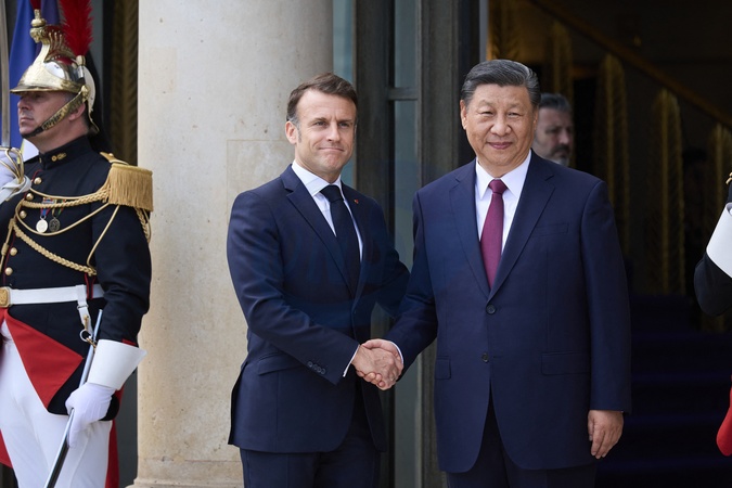 Prezydent Emmanuel Macron przyjmuje w Pałacu Elizejskim Xi Jinpinga, sekretarza generalnego Komunistycznej Partii Chin