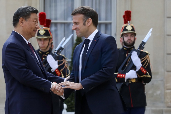 Prezydent Francji Emmanuel Macron przyjmuje Xi Jinpinga, Prezydenta Chińskiej Republiki Ludowej w Pałacu Elizejskim w Paryżu