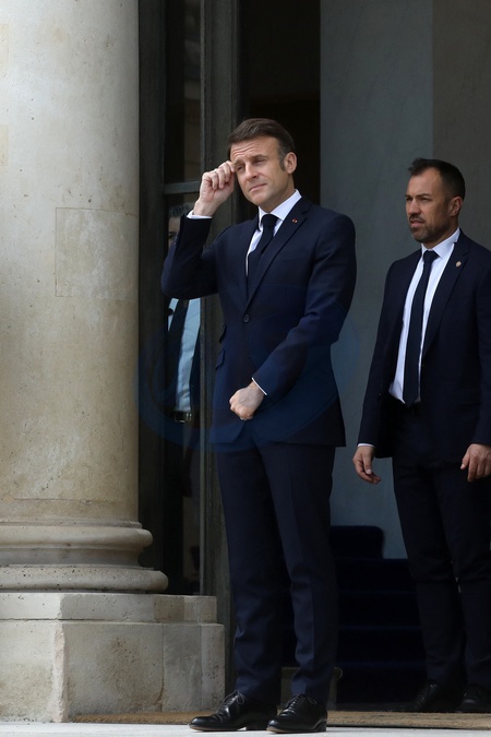 Prezydent Francji Emmanuel Macron przyjmuje Xi Jinpinga, Prezydenta Chińskiej Republiki Ludowej w Pałacu Elizejskim w Paryżu