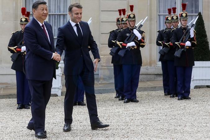 Prezydent Francji Emmanuel Macron przyjmuje Xi Jinpinga, Prezydenta Chińskiej Republiki Ludowej w Pałacu Elizejskim w Paryżu