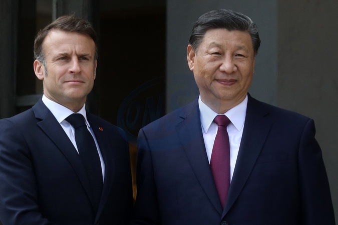 Prezydent Francji Emmanuel Macron przyjmuje Xi Jinpinga, Prezydenta Chińskiej Republiki Ludowej w Pałacu Elizejskim w Paryżu