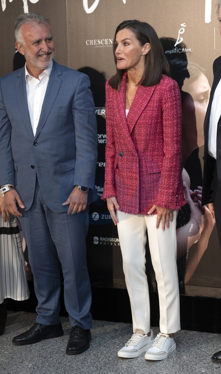 La reine Letizia d'Espagne au concert "EmocionArte"à Madrid. Le 6 mai 2024 Queen Letizia (wearing sneaker because of a slight injury diagnosed as "fracture of the proximal phalanx of the middle toe of the right foot) attends the 'EmocionArte' concert at The Royal Theatre. Madrid - May 6, 2024