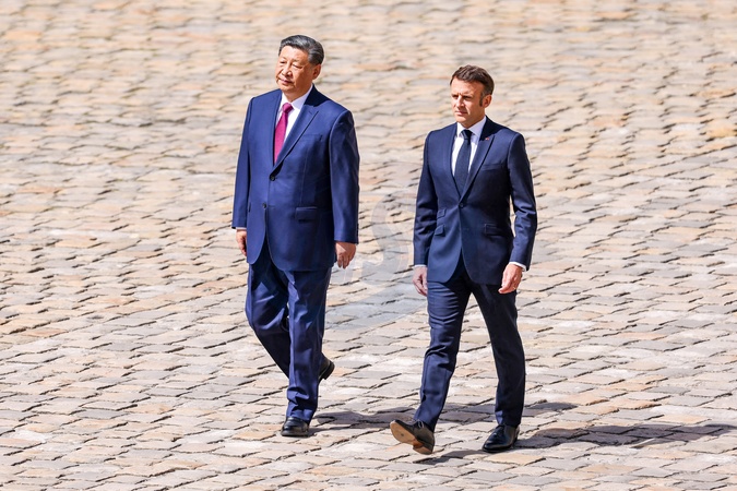 Le président Emmanuel Macron et le président chinois Xi Jinping lors de la cérémonie d'accueil officiel à l'Hôtel national des Invalides à Paris, France, le 6 mai 2024. © Cyril Moreau/Bestimage French President Emmanuel Macron, his wife Brigitte Macron, Chinese President Xi Jinping and his wife Peng Liyuan during an official welcoming ceremony, as part of the Chinese president's two-day state visit at The Invalides, in Paris, France, on May 6, 2024.