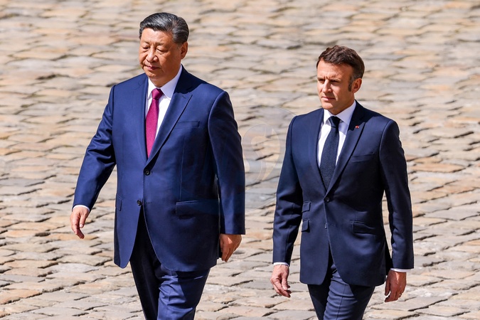 Le président Emmanuel Macron et le président chinois Xi Jinping lors de la cérémonie d'accueil officiel à l'Hôtel national des Invalides à Paris, France, le 6 mai 2024. © Cyril Moreau/Bestimage French President Emmanuel Macron, his wife Brigitte Macron, Chinese President Xi Jinping and his wife Peng Liyuan during an official welcoming ceremony, as part of the Chinese president's two-day state visit at The Invalides, in Paris, France, on May 6, 2024.