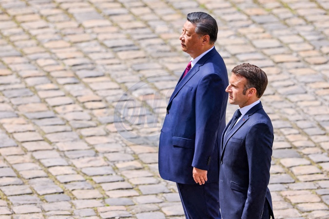 Le président Emmanuel Macron et le président chinois Xi Jinping lors de la cérémonie d'accueil officiel à l'Hôtel national des Invalides à Paris, France, le 6 mai 2024. © Cyril Moreau/Bestimage French President Emmanuel Macron, his wife Brigitte Macron, Chinese President Xi Jinping and his wife Peng Liyuan during an official welcoming ceremony, as part of the Chinese president's two-day state visit at The Invalides, in Paris, France, on May 6, 2024.
