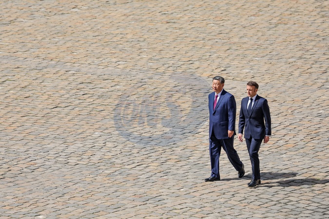 Le président Emmanuel Macron et le président chinois Xi Jinping lors de la cérémonie d'accueil officiel à l'Hôtel national des Invalides à Paris, France, le 6 mai 2024. © Cyril Moreau/Bestimage French President Emmanuel Macron, his wife Brigitte Macron, Chinese President Xi Jinping and his wife Peng Liyuan during an official welcoming ceremony, as part of the Chinese president's two-day state visit at The Invalides, in Paris, France, on May 6, 2024.
