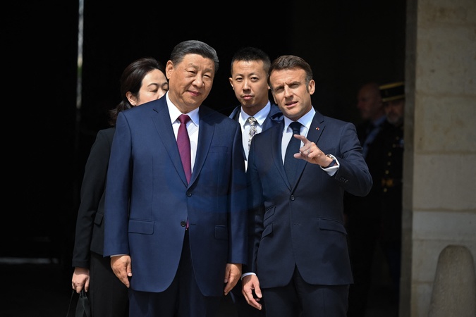 Le président Emmanuel Macron et le président chinois Xi Jinping lors de la cérémonie d'accueil officiel à l'Hôtel national des Invalides à Paris, France, le 6 mai 2024. © Jacques Witt/Pool/Bestimage lors de la cérémonie d'accueil officiel à l'Hôtel national des Invalides à Paris, France, le 6 mai 2024. © Jacques Witt/Pool/Bestimage French President Emmanuel Macron and Chinese President Xi Jinping walk together during of the official welcoming ceremony, as part of the Chinese President's two-day state visit, at The Invalides in Paris on May 6, 2024.