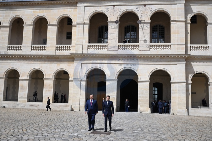 Le président Emmanuel Macron et le président chinois Xi Jinping lors de la cérémonie d'accueil officiel à l'Hôtel national des Invalides à Paris, France, le 6 mai 2024. © Jacques Witt/Pool/Bestimage lors de la cérémonie d'accueil officiel à l'Hôtel national des Invalides à Paris, France, le 6 mai 2024. © Jacques Witt/Pool/Bestimage French President Emmanuel Macron and Chinese President Xi Jinping walk together during of the official welcoming ceremony, as part of the Chinese President's two-day state visit, at The Invalides in Paris on May 6, 2024.