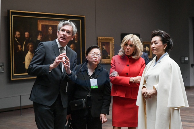 Francuska Pierwsza Dama Brigitte Macron i Chińska Pierwsza Dama Peng Liyuan odwiedzają Musée d'Orsay w Paryżu