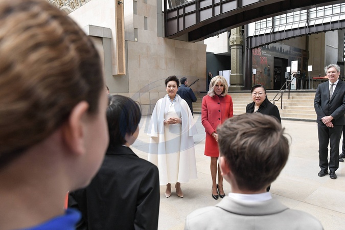 Francuska Pierwsza Dama Brigitte Macron i Chińska Pierwsza Dama Peng Liyuan odwiedzają Musée d'Orsay w Paryżu