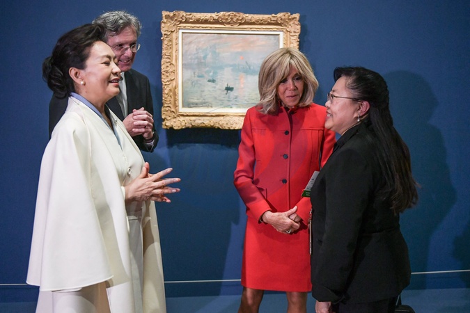Francuska Pierwsza Dama Brigitte Macron i Chińska Pierwsza Dama Peng Liyuan odwiedzają Musée d'Orsay w Paryżu
