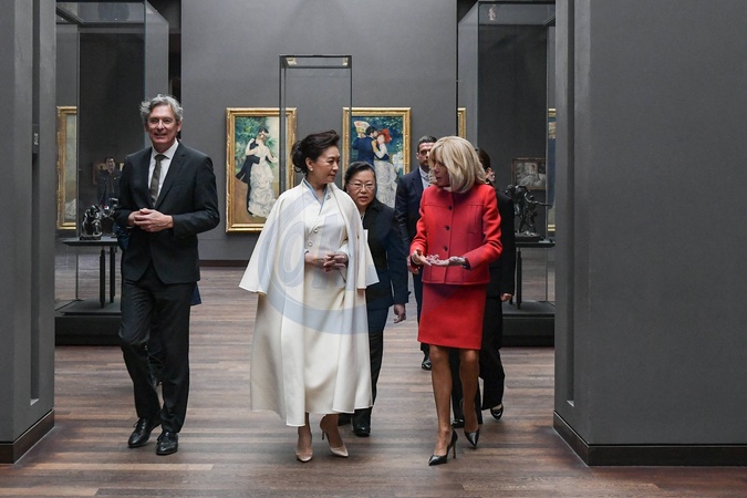 Francuska Pierwsza Dama Brigitte Macron i Chińska Pierwsza Dama Peng Liyuan odwiedzają Musée d'Orsay w Paryżu