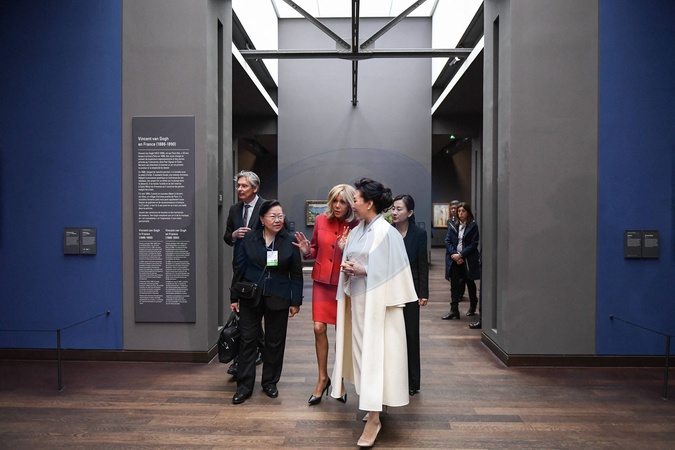 Francuska Pierwsza Dama Brigitte Macron i Chińska Pierwsza Dama Peng Liyuan odwiedzają Musée d'Orsay w Paryżu