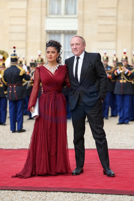 Salma Hayek et son mari François-Henri Pinault - Arrivée des invités au dîner d'Etat en l'honneur du président chinois Xi Jinping et de sa femme la Première Dame Peng Liyuan au palais présidentiel de l'Elysée à Paris, France, le 6 mai 2024. © Cyril Moreau/Bestimage Celebs arrive to attend an official state dinner as part of the Chinese president's two-day state visit to France, at the Presidential Elysee Palace in Paris, France, on May 6, 2024.