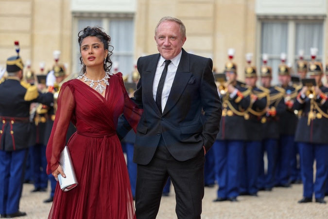 Salma Hayek et son mari François-Henri Pinault - Arrivée des invités au dîner d'Etat en l'honneur du président chinois Xi Jinping et de sa femme la Première Dame Peng Liyuan au palais présidentiel de l'Elysée à Paris, France, le 6 mai 2024. © Cyril Moreau/Bestimage Celebs arrive to attend an official state dinner as part of the Chinese president's two-day state visit to France, at the Presidential Elysee Palace in Paris, France, on May 6, 2024.